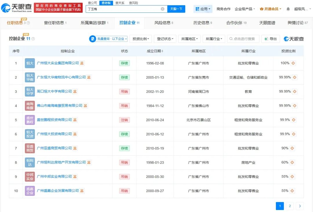 通过直接或间接持股,丁玉梅拥有10余家企业的实际控制权,其中多数已被吊销或注销