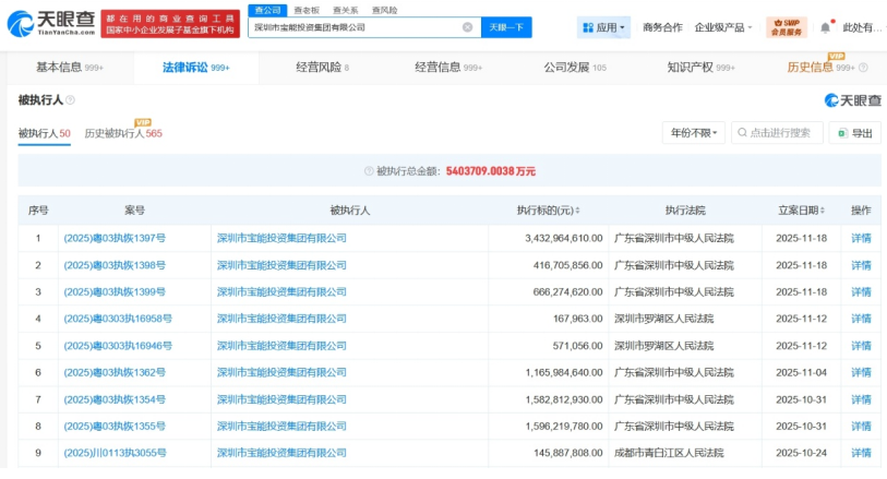 深圳市宝能投资集团有限公司新增3则恢复执行信息,执行标的合计45亿余元,被执行人还包括姚振华、宝能地产股份有限公司等