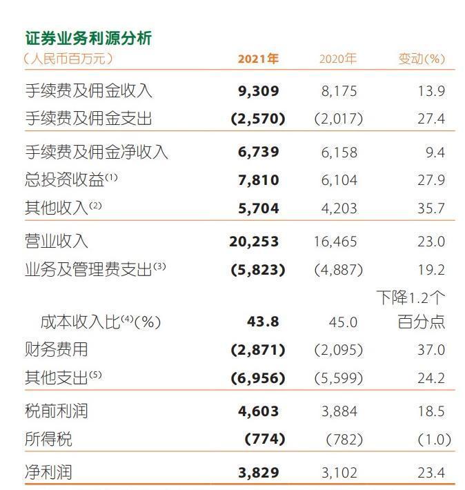 据中国平安2021年报,当年平安证券实现净利润38.29亿元,同比增长23.4%;营业收入为202.53亿元,同比增23%。据中国证券业协会数据,当年中国证券业营业收入同比增12.03%,净利润同比增21.32%。