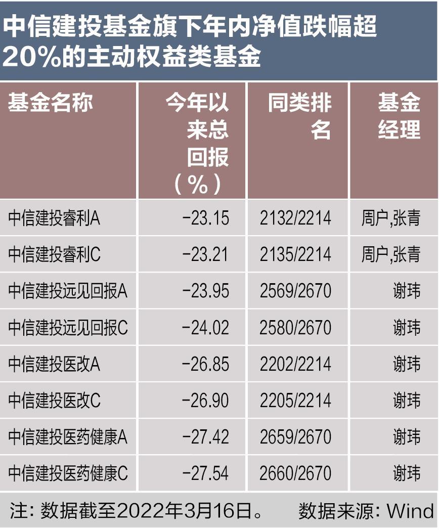 具体来看,中信建投睿利A/C、中信建投远见回报A/C等8只基金年内业绩下跌超20%。