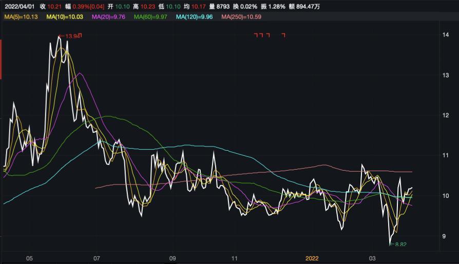 此外,《投资时报》研究员注意到,豫园股份曾于2021年12月14日发布回购股票消息,而此次回购措施并未对该公司股价形成明显的正面促进。自该信息发布后,该公司股价仍然处于震荡走弱的态势,且最低曾于2022年3月16日下探至8.53元/股(前复权)最低点,较2021年以来的最高点下挫42.71%。截至3月31日收盘,该公司股价报收于10.17元/股(前复权),最新总市值396.43亿元。