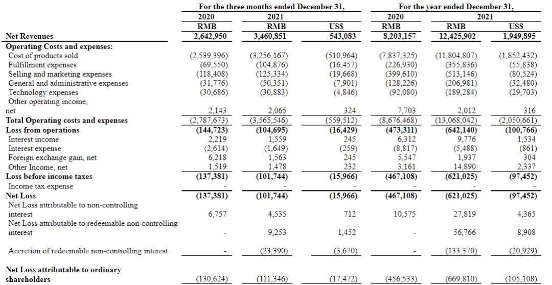 数据来源:公司2021年第四季度及全年未经审计财报