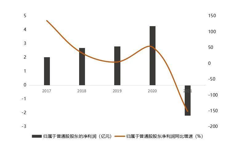 宝尊电商2017年—2021年归属于普通股股东的净利润及同比增速(%)