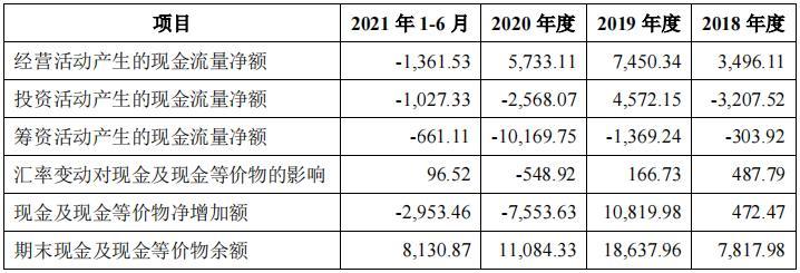 应收账款和存货金额的不断上涨,或影响到公司现金流。报告期内,金泉股份经营活动产生的现金流量净额分别为3496.11万元、7450.34万元、5733.11万元和-1361.53万元。可以看到,2020年该公司经营活动现金净流入较上年有所减少,而2021年上半年则为负值。