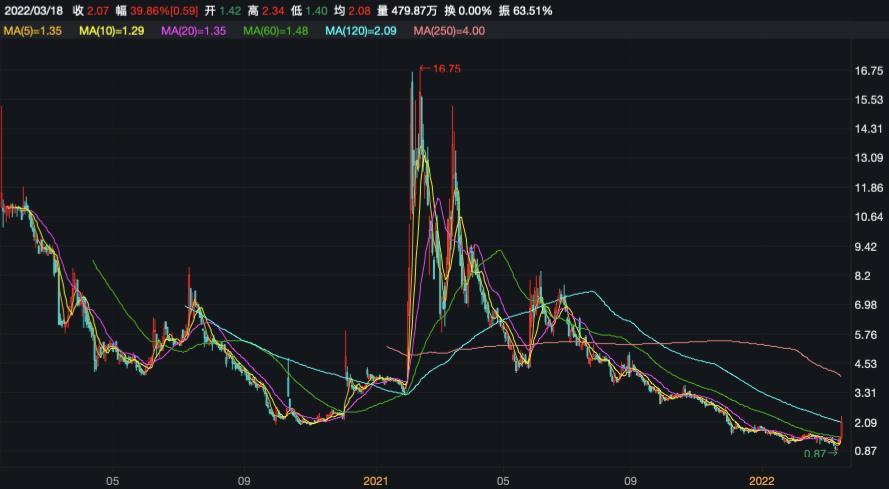 截至3月18日美股收盘,荔枝报收于2.07美元/股,已较2021年2月12日盘中触达的16.75美元/股的历史最高点下挫87.64%。