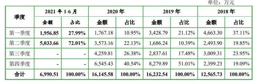 除地域集中度过高外,正业设计另一个经营风险是其收入的季节性波动较为明显,收入确认主要集中在下半年尤其是第四季度。招股书数据显示,2019年第四季度,以及2020年第四季度,正业设计确认的营业收入分别为8279.89万元和6545.43万元,占当年营业收入总额比例分别为51.01%和40.54%。