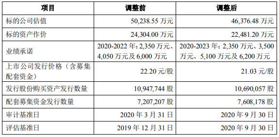 而本次调整前,业绩承诺方承诺标的公司2020年至2022年经审计扣非净利润分别为2350万元、4050万元及6000万元,本次调整后,业绩承诺方承诺的标的公司2020年至2023年经审计净利润分别为2350万元、3500万元、5100万元及6200万元,与此前有较大差距。