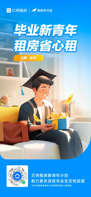 早在去年,贝壳租房就推出新青年计划,以实实在在的优惠让利,助力万千毕业生在城市“落户安居”。今年,贝壳租房在规模和质量上双向发力,将联动北京、上海、苏州、杭州、成都、南京、西安、广州、深圳、宁波、济南、武汉、天津全国13个城市开启新青年计划,为应届毕业生(毕业时间在2023年1月1日至2023年12月31日之间的2023年应届毕业生,含国内外高校统招全日制的专科、本科及硕士等)提供0押、月付、服务费折扣、中介费折扣等不同种类的租房专项优惠(各城市优惠活动内容不同,具体以城市公布的具体活动内容为准),活动覆盖省心租、集中式公寓、普通租赁等产品,持续降低青年人租房门槛。