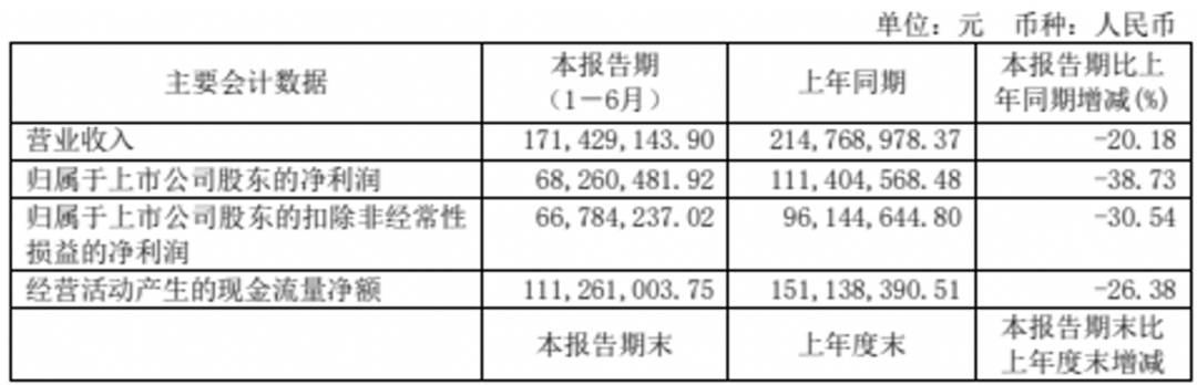 2023年半年度报告显示,公司营业收入为1.71亿元,同比下滑20.18%,归母净利润为6826.05万元,同比下滑38.73%。据同花顺数据显示,该公司2023年上半年收入在38家原料药同类企业中位居第37位。这是公司自上市以来,首次出现中期营收与纯利增速双双下滑情形。