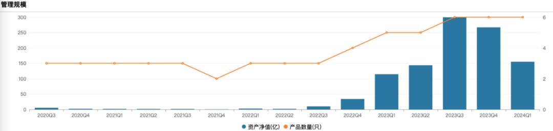 标点财经研究员还注意到,自2020年9月3日起马芳担任基金经理,有两年多时间(2020年三季度末至2022年三季度末)她所管基金规模不足10亿元。2022年末,她掌舵基金规模升至33.97亿元。2023年一季度末,她所管基金规模迅速增至114.56亿元。2023年三季度末,她在管基金规模飙升至299.58亿元。不过,她的管理规模在2023年末已下滑至267.01亿元。