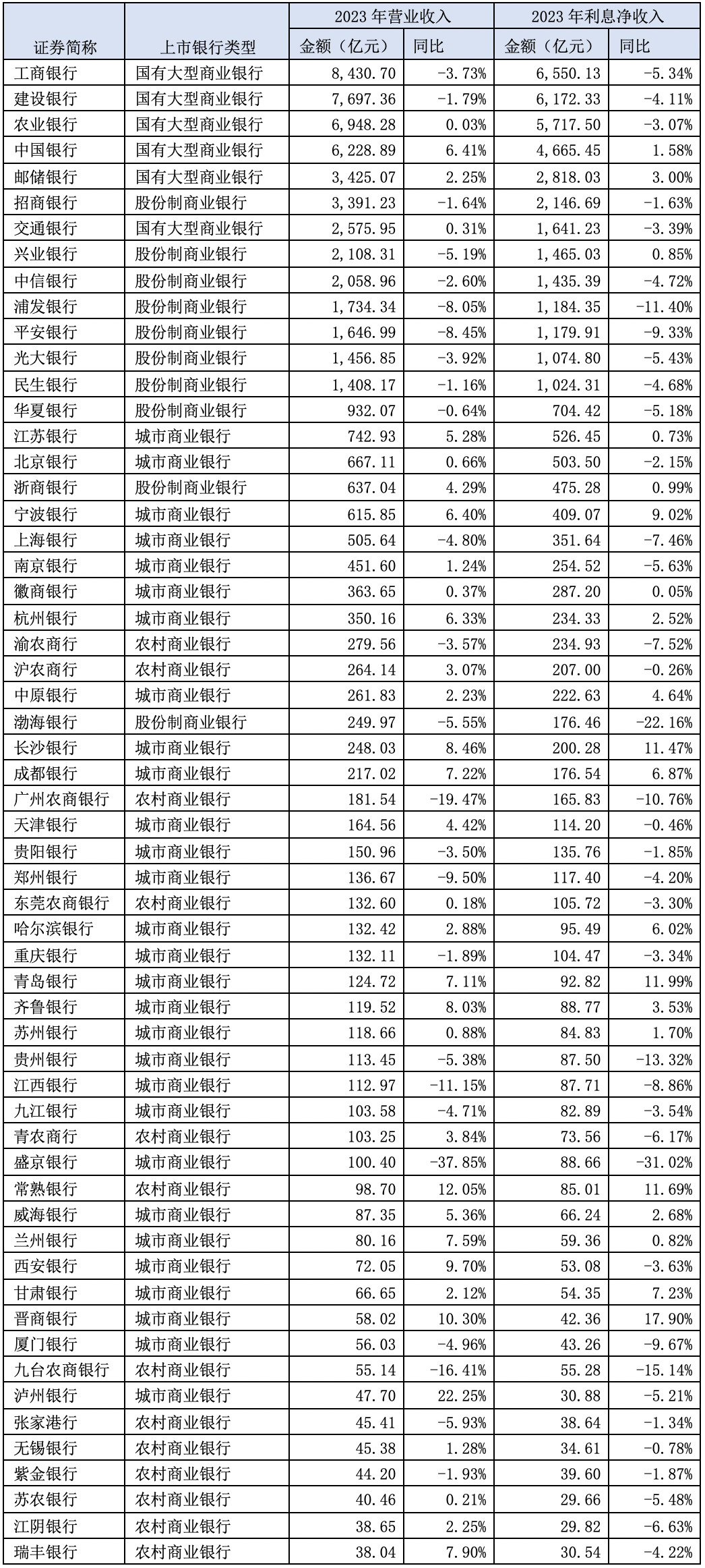 2023年,58家上市银行中营收下降的有25家,实现正增长的有33家