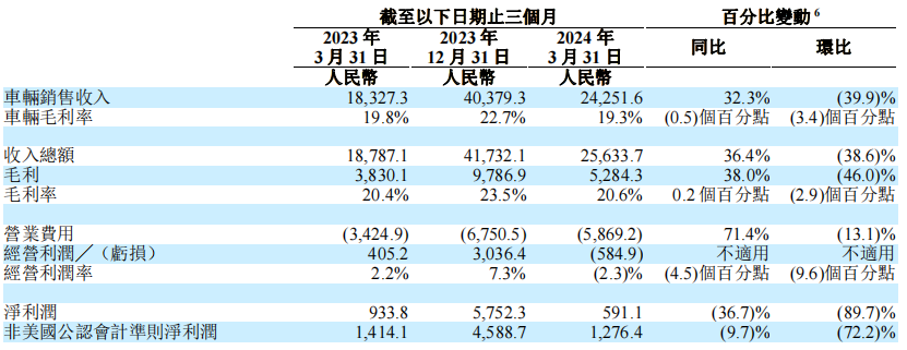 事实上,跟去年同期相比,理想多卖了2.78万辆汽车,今年一季度公司共计交付8.04万辆。车辆销售收入也同比上升32.3%,达至242.52亿元;总收入同比增长36.4%至256.34亿元。但相比2023年第四季度,理想汽车的交付量却大减逾5万辆,车辆销售收入、总收入也环比下滑接近四成,且为近四个季度最低。