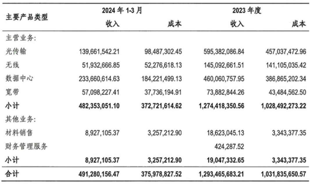 索尔思光电2024年一季度营收及成本构成