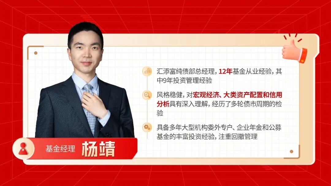 丰润中短债多管齐下,稳中求进,通过相对灵活的久期、杠杆适度增厚、稳健信用策略等精细化操作手段,力求增厚收益。而这也不得不提基金产品的掌舵人——汇添富纯债部的总经理杨靖。