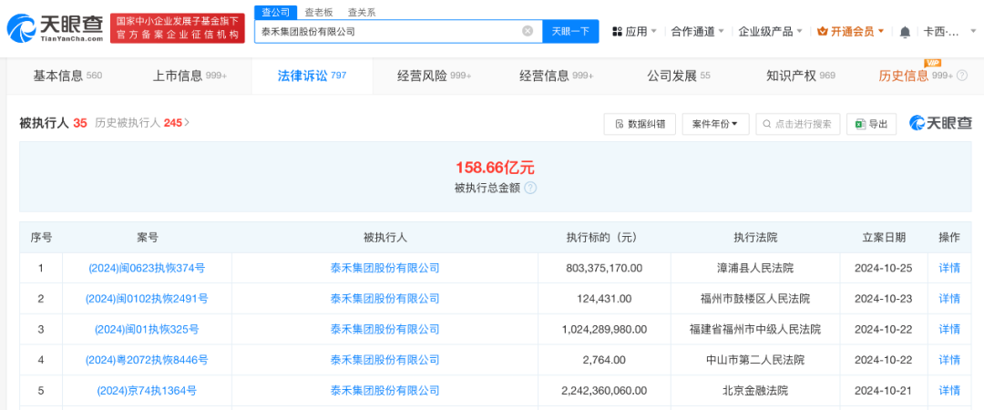 该公司现存35条被执行人信息,被执行总金额超158亿元