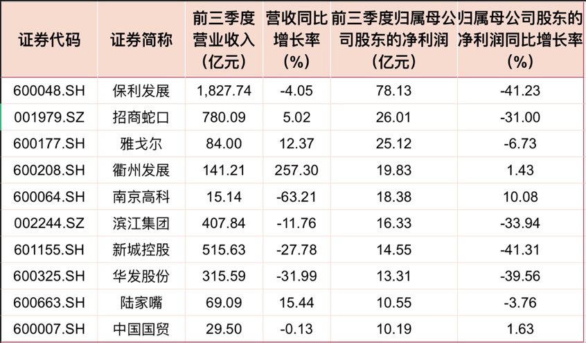与此相对应,前三季度55家房企实现盈利,归母净利润总额合计约为318.84亿元,盈利在10亿元以上的共10家,保利发展以78.13亿元,稳居行业第一。