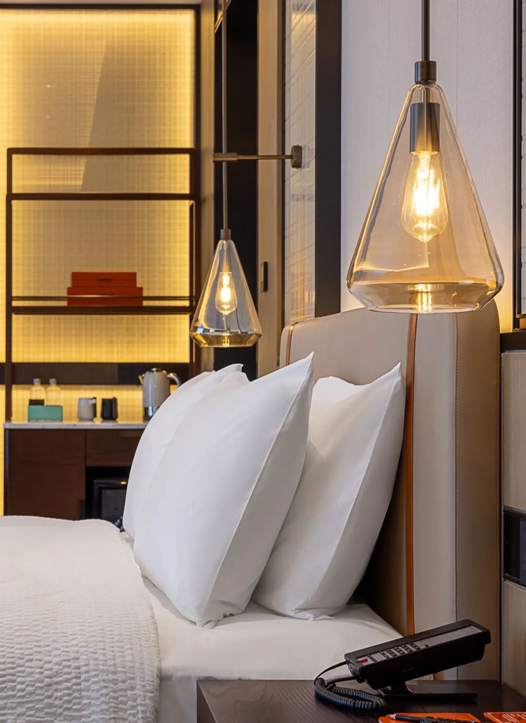 如今,永利银行旧址已焕新为全国首家艺术生活方式酒店——武汉风貌安坻酒店,由城市风貌公司运营的“独特艺术酒店”+“非凡美术空间”。金螳螂以 EPC承接了本次改造更新,涵盖加固、结构改造、景观、钢结构、装修、外立面、机电、智能化、软装等专业。