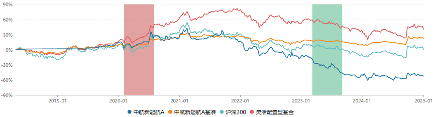 其实,中航新起航A其他阶段的业绩表现也不甚理想。根据Wind数据,截至2025年1月6日,该基金过去一年、过去两年、过去三年、过去五年收益率分别为-3.33%、-47.8%、-57.98%、-58.85%,而同期业绩比较基准收益率分别为11.23%、4.29%、-3.08%、10.09%。