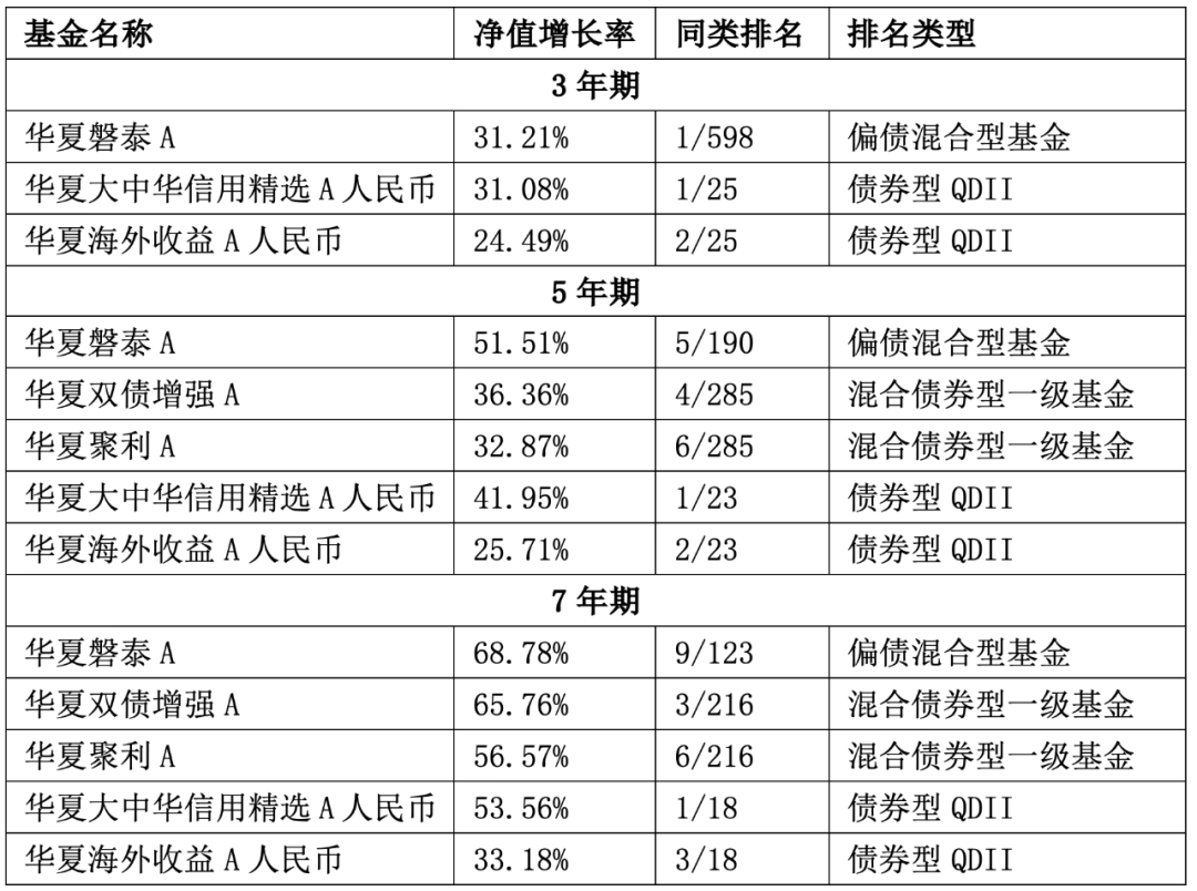 华夏基金旗下中长期业绩同类排名前十的固收类基金