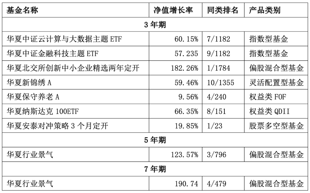 华夏基金旗下中长期业绩同类排名前十的权益类基金