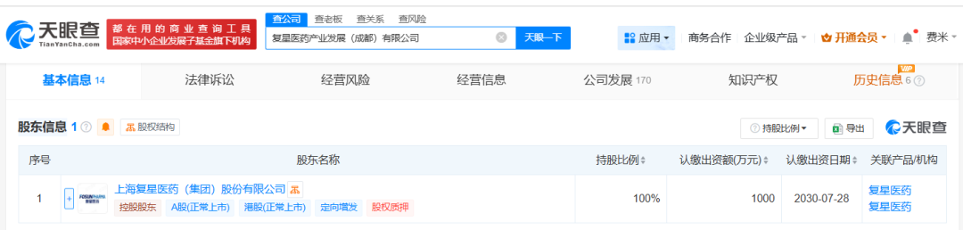 天眼查App显示,近日,复星医药产业发展(成都)有限公司成立,法定代表人为王可心,注册资本1000万人民币,经营范围包括医学研究和试验发展、药物检测仪器销售、制药专用设备销售等。股东信息显示,该公司由复星医药(600196)全资持股。