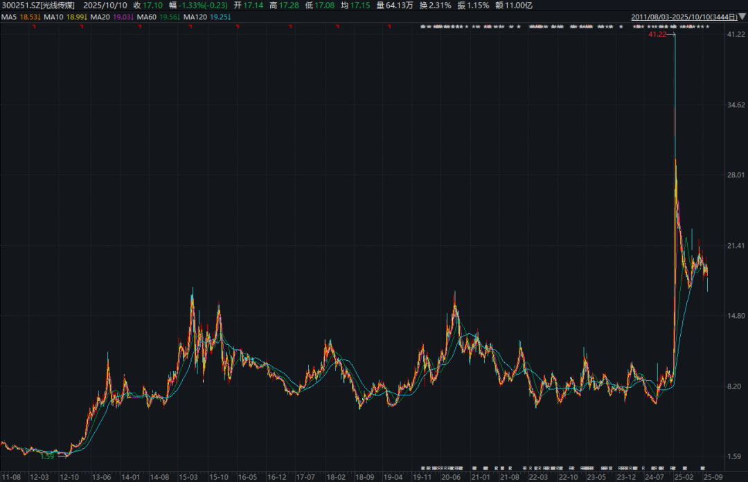 或受《三国的星空第一部》票房不佳影响,光线传媒假期开盘后股价下跌。据Wind数据显示,截至10月9日收盘,光线传媒股价报收于17.33元/股,跌幅为10.53%。10月10日,该公司股价继续小幅下跌,当日下跌1.33%报收于17.10元/股,公司当前总市值为501.64亿元。