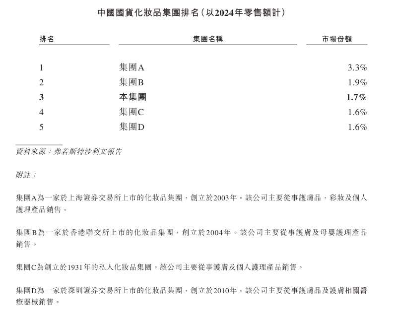中国前五大国货化妆品集团市场份额