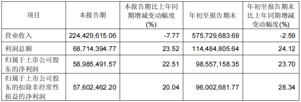 惠泉啤酒2025年第三季度和前三季度主要财务数据(元)