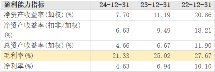 将时间跨度扩展至2022年—2024年,视源股份这一特点愈发显著。在此期间,公司营业收入从209.9亿元稳步增长至224.01亿元。净利润却从20.72亿元下滑至9.71亿元,与营收增长轨迹明显背离。为何会出现这种情况?