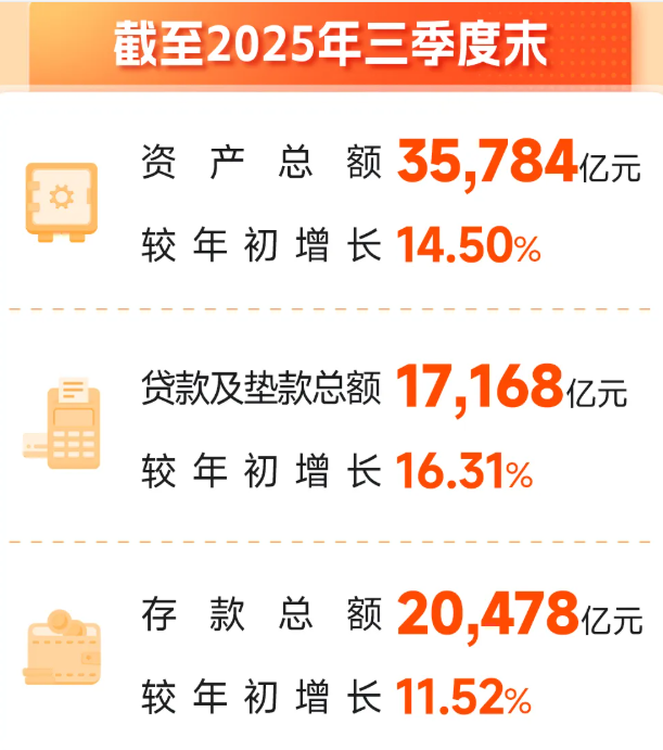今年三季度末,宁波银行资产总额35783.96亿元,首次突破3.5万亿元,较上年末增长14.50%;贷款及垫款总额17168.23亿元,较上年末增长16.31%;存款总额20478.04亿元,较上年末增长11.52%。
