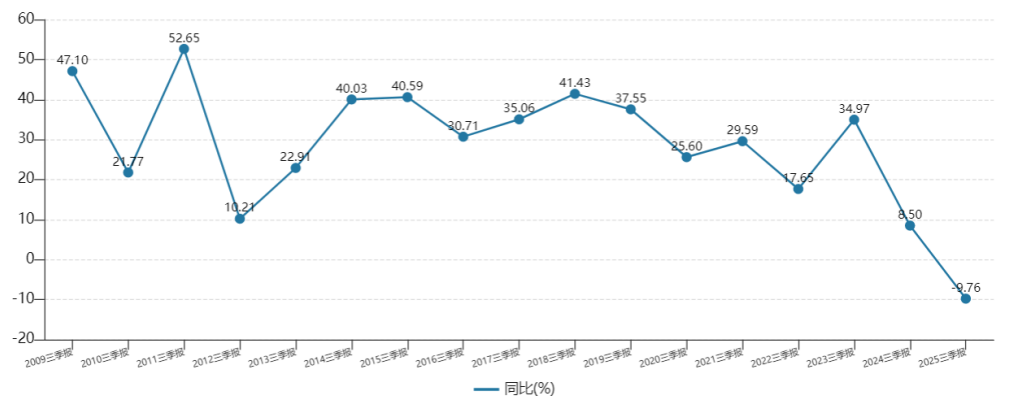 数据显示,今年前三季度,公司实现营收174.8亿元,同比增长7.3%,虽然维持了增长,但增速较前些年20%至40%的水平差距较大。同期,公司实现净利润33.67亿元,同比下滑8.21%;归母净利润为31.15亿元,同比下降9.76%;不过,其扣非后归母净利润为31.19亿元,同比微增0.2%。