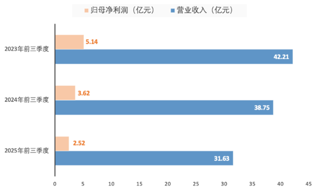 2025年前三季度,华熙生物仍处营收净利双降态势,其中,营业收入同比下降18.36%至31.63亿元,归母净利润为2.52亿元,同比降幅为30.29%