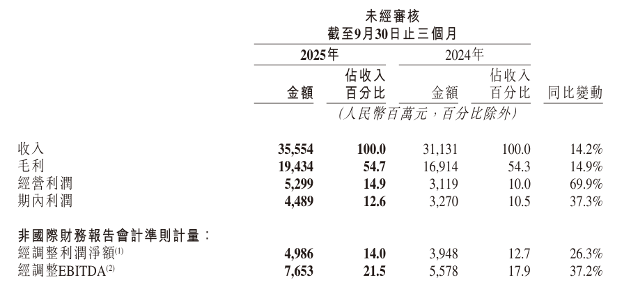 近期,快手-W(01024.HK)交出2025年第三季度成绩单。期内实现营收355.54亿元,同比增长14.2%;经营利润52.99亿元,同比增长69.9%。