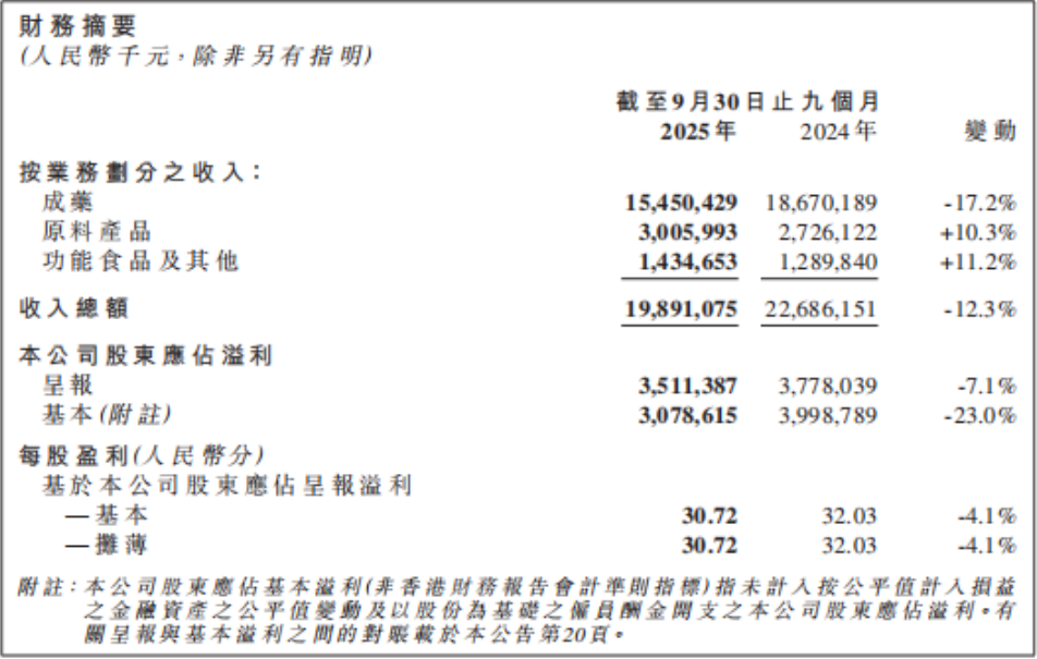 期内,公司实现收入198.91亿元,同比下滑12.3%;公司股东应占呈报溢利为35.11亿元,同比下滑7.1%。占据收入大头的成药业务本期收入同比下降17.2%,落至154.50亿元,降幅是自2019年以来同期最大降幅。其中,抗肿瘤收入降幅最大,较上年同期腰斩不止;神经系统和抗感染用药的收入降幅也在两成以上。