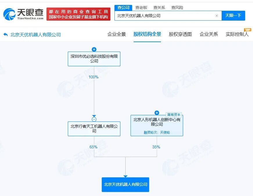 天眼查App显示,近日,北京天优机器人有限公司成立,法定代表人为郝宝玉,注册资本1000万人民币,经营范围包括智能机器人销售、服务消费机器人销售、信息技术咨询服务等,由优必选旗下北京行者天工机器人有限公司、北京人形机器人创新中心有限公司共同持股。