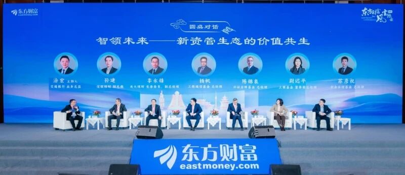 主题演讲后,在交通银行股份有限公司业务总监涂宏的主持下,信银理财有限责任公司副总裁孙建、光大理财有限责任公司党委委员、副总经理李永锋、工银瑞信基金管理有限公司总经理杨帆、兴证全球基金管理有限公司总经理陈锦泉、上银基金管理有限公司董事兼总经理尉迟平、创金合信基金管理有限公司总经理苏彦祝就“智领未来——新资管生态的价值共生”为主题展开了圆桌讨论。