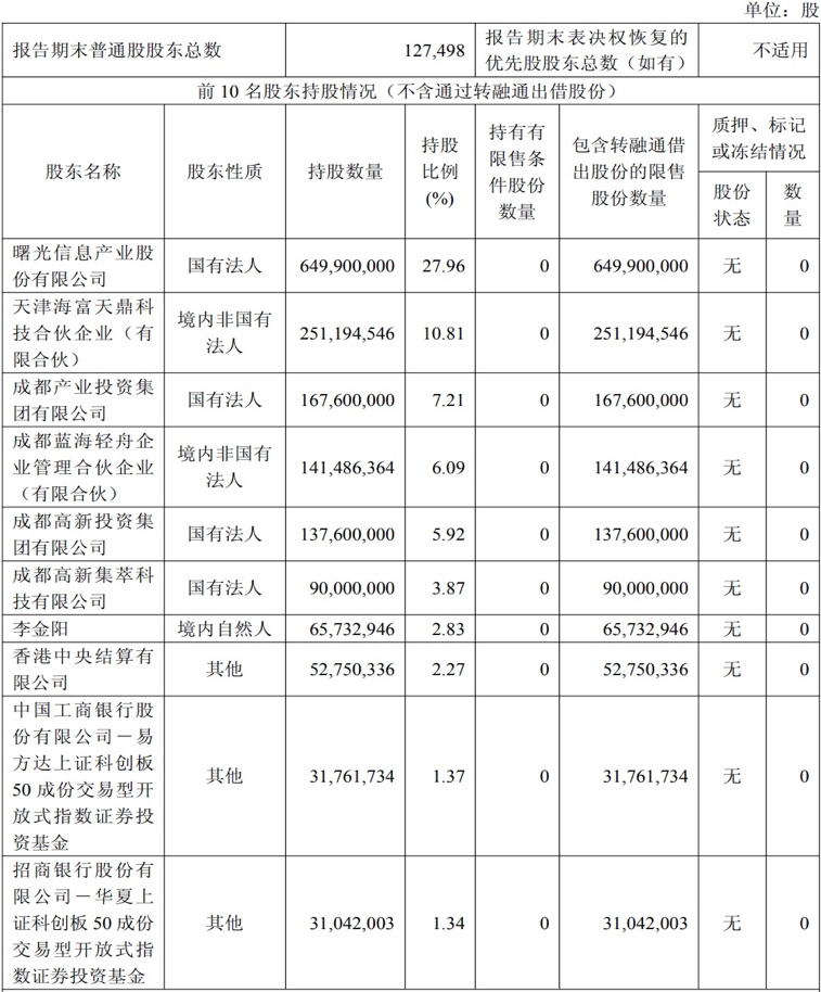 海光信息前10名股东持股情况