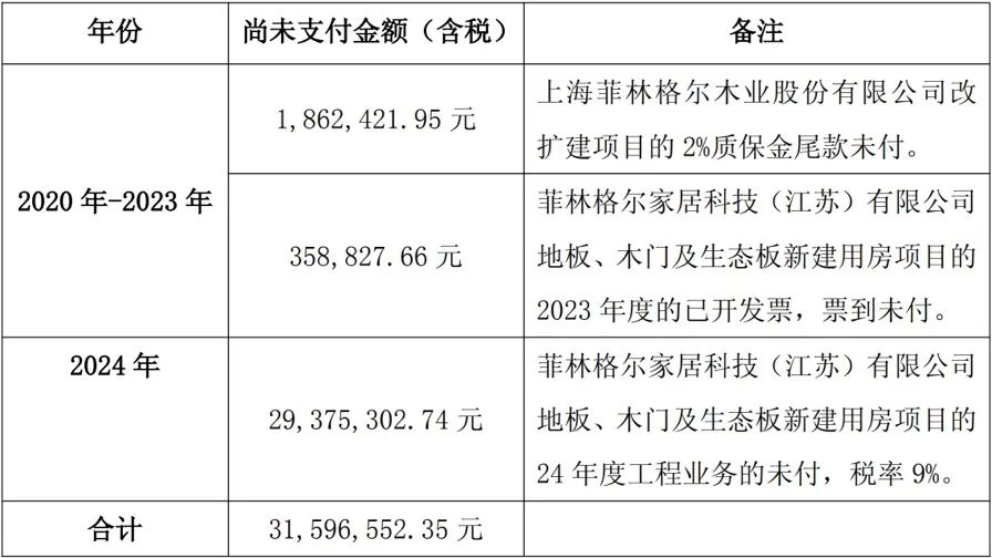 至2025年,上述两个项目均已完工,预计未来不会继续与其发生新的施工等业务。不过,截至12月8日公告披露日,两个项目结算审价后,尚有部分尾款未支付,金额合计为3159.66万元(含税),待经菲林格尔股东会审议通过后,才可支付。
