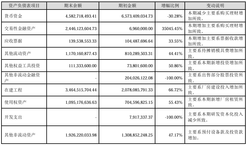 领益智造2025年三季度末主要资产构成及变动情况(元)