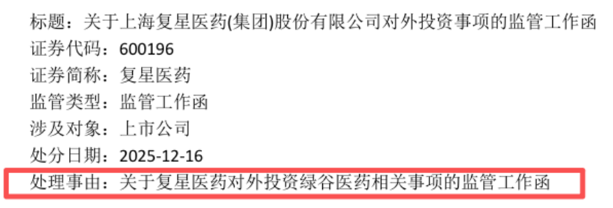 然而公告发布次日,上海证券交易所即就此次收购事项向复星医药下发监管工作函,直指交易细节披露不足、估值合理性存疑等核心问题。