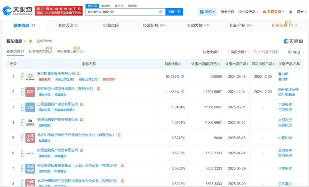该公司成立于2012年9月,法定代表人为岑远川,注册资本约106.37亿人民币,由赛力斯(601127)、国开制造业转型升级基金(有限合伙)、工银金融资产投资有限公司等共同持股。