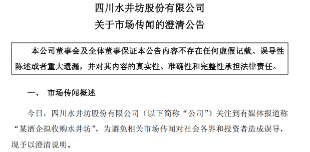 一则澄清公告,让水井坊(600779.SH)股价回归理性。
