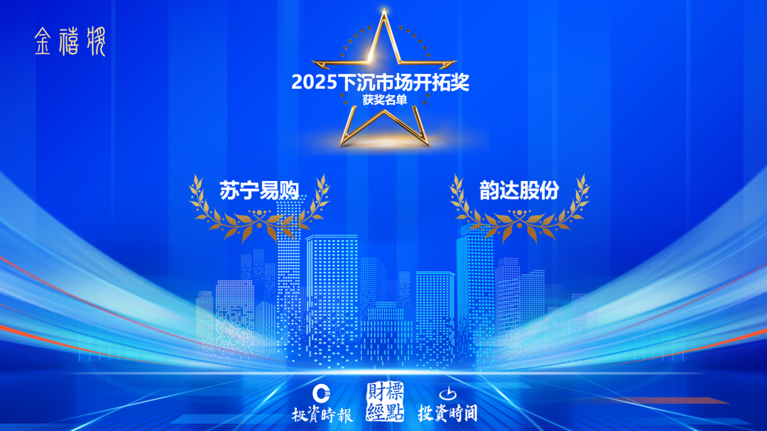 最终苏宁易购、韵达控股集团股份有限公司脱颖而出,摘得第八届金禧奖“2025下沉市场开拓奖”奖项。