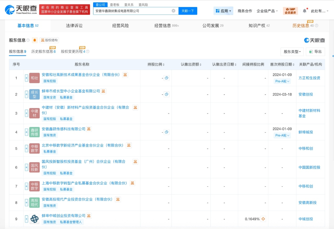 天眼查工商信息显示,近日,安徽华鑫微纳集成电路有限公司发生工商变更,芯的(上海)集成电路技术有限公司等退出股东行列,新增北京中移数字新经济产业基金合伙企业(有限合伙)、上海中移数字转型产业私募基金合伙企业(有限合伙)、中建材(安徽)新材料产业投资基金合伙企业(有限合伙)等为股东,同时,多位高管发生变更。