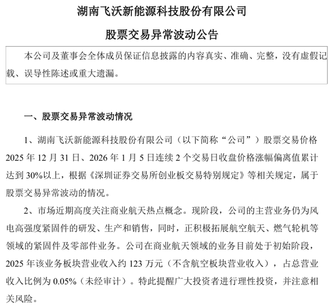 飞沃科技股票交易异常波动公告