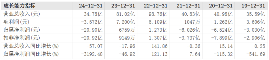 从近年业绩轨迹来看,亿晶光电的经营压力呈持续累积态势。2019至2024年间,公司有四年陷入亏损区间,2024年成为业绩下滑的关键节点,全年营收同比锐减57.07%,归母净亏损达20.90亿元,毛利率更是下探至-10.27%。