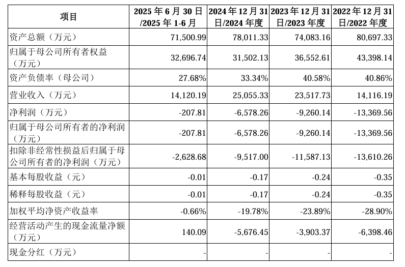 虽然深之蓝凭借全面产品布局赢得广阔市场,营收从2022年1.41亿元快速提升至2024年2.51亿元,2025年上半年更已追平2022全年营收,但其盈利端始终未能同步改善。招股书显示,自2022年至2025年上半年(下称报告期),公司归母净利润始终为负,分别为-1.34亿元、-0.93亿元、-0.66亿元及-207.81万元,累计未分配利润达-6.22亿元,尚未迈入盈利区间。