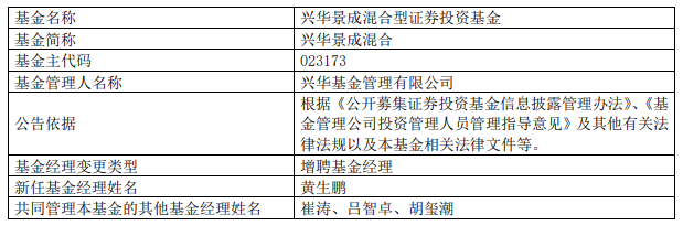 兴华景成增聘基金经理