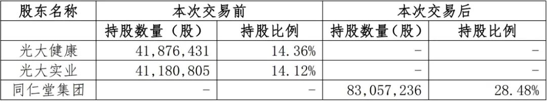 截至2025年三季度,在嘉事堂的股权结构中,光大健康、光大实业分别以14.36%、14.12%的持股比例,位列公司前两大股东。而本次权益变动完成后,嘉事堂的控股股东将由光大健康变更为同仁堂集团。