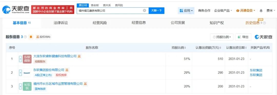 东软集团等在福州成立康养公司,注册资本1000万